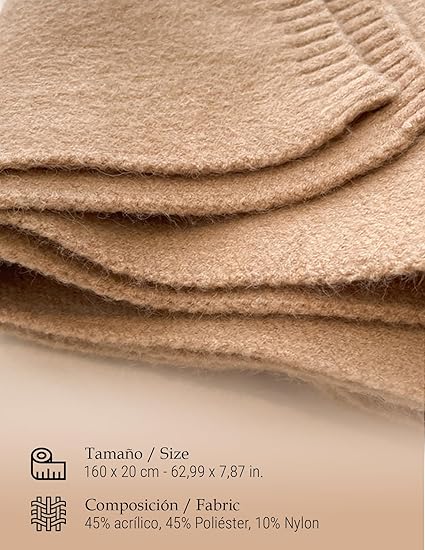 - 🧣 Tamaño Práctico de 160 x 20 cm – Bufanda de punto cómoda y fácil de llevar. Perfecta para envolver al cuello con una o dos vueltas y mantener el calor sin exceso de volumen.