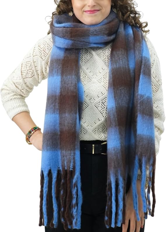 Bufanda de Mujer para Invierno Cuadros Azul-Marrón