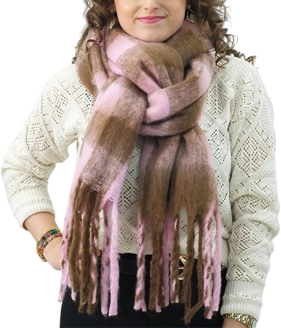 Bufanda de Mujer para Invierno Cuadros Rosa-Marrón