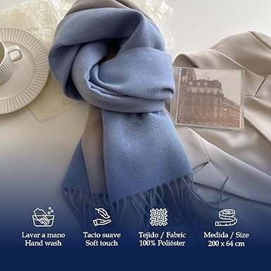Bufanda Larga para Mujer con Flecos Azul-Gris