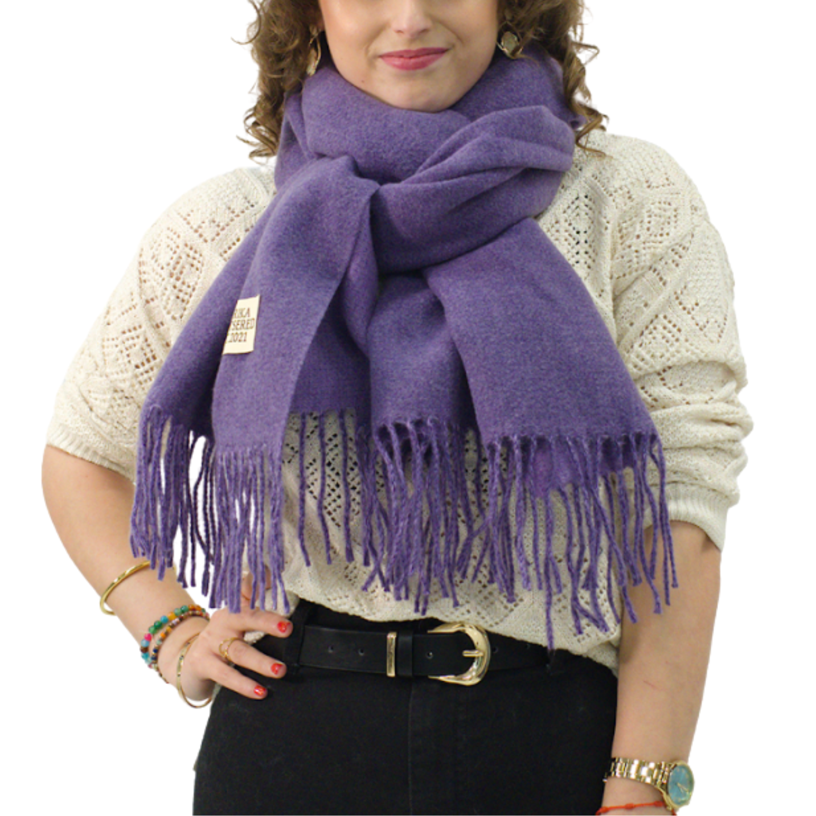 Bufanda Larga para Mujer con Flecos Morada