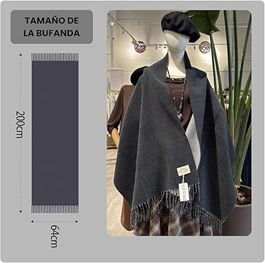 🧣 Tamaño XXL 200x64 cm: Más estilo y abrigo Bufanda extragrande ideal para llevar de múltiples formas: envuelta al cuello, como chal o incluso como manta ligera. Perfecta para el invierno, viajes o salidas al aire libre.