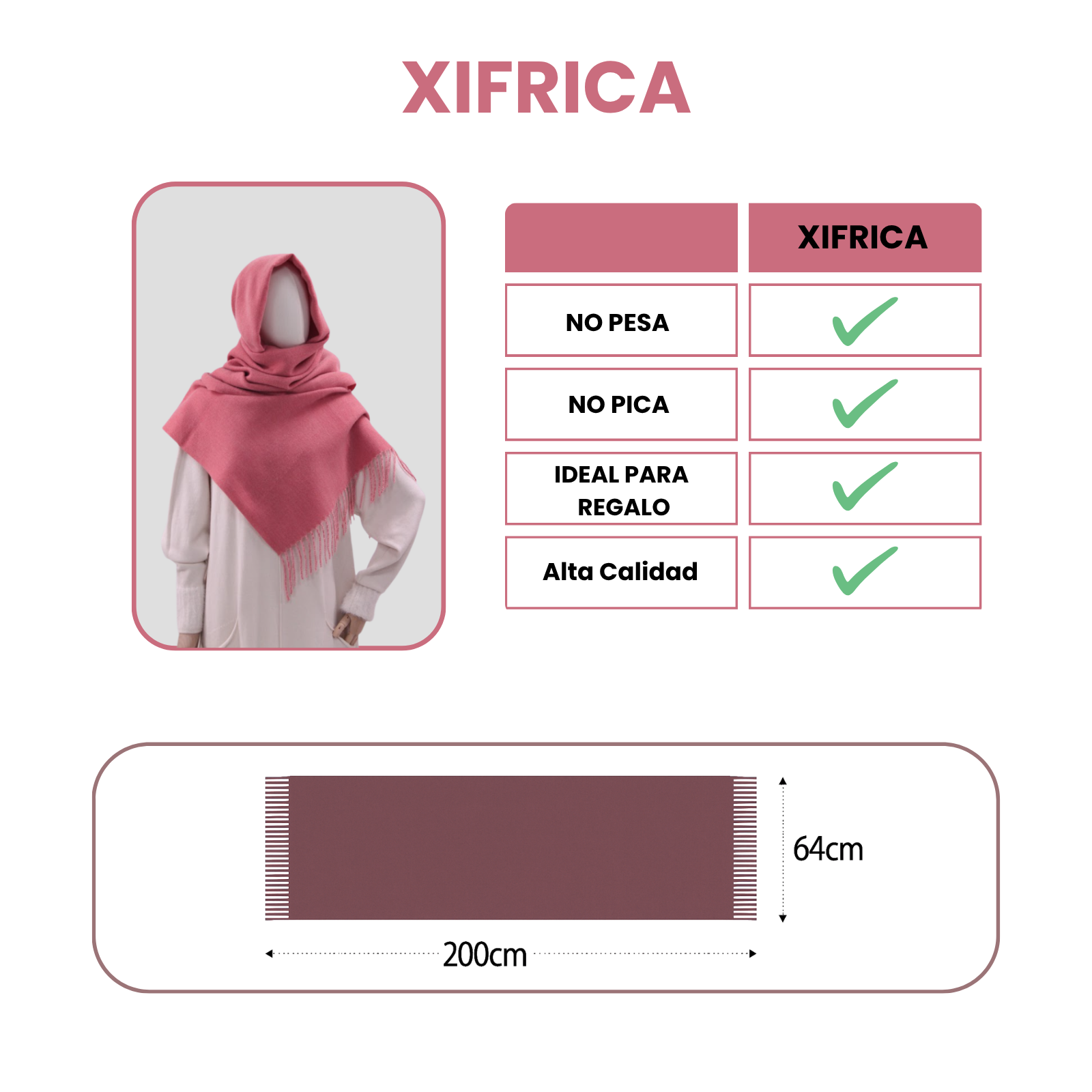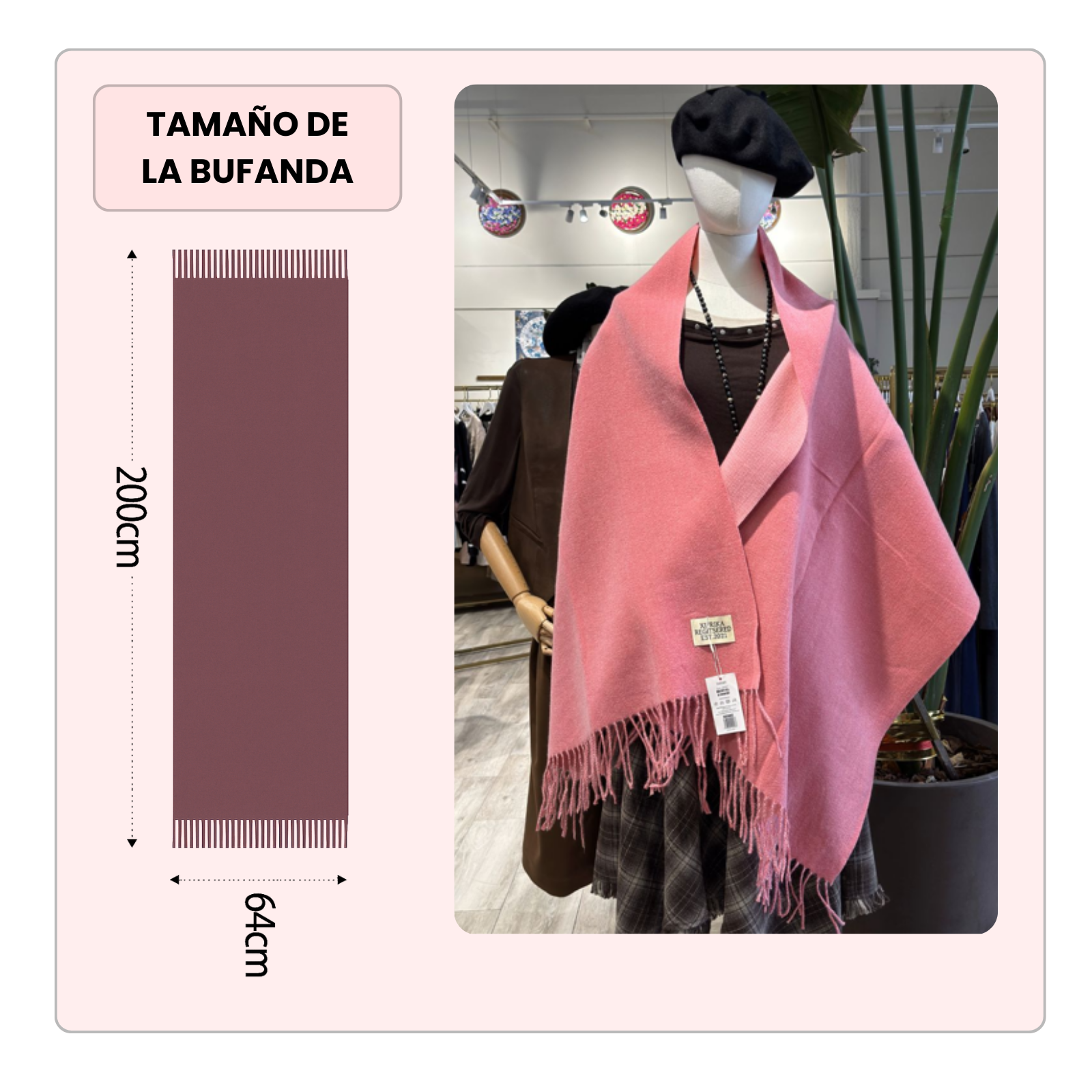 🧣 Tamaño XXL 200x64 cm: Más estilo y abrigo Bufanda extragrande ideal para llevar de múltiples formas: envuelta al cuello, como chal o incluso como manta ligera. Perfecta para el invierno, viajes o salidas al aire libre.