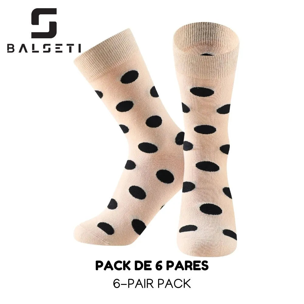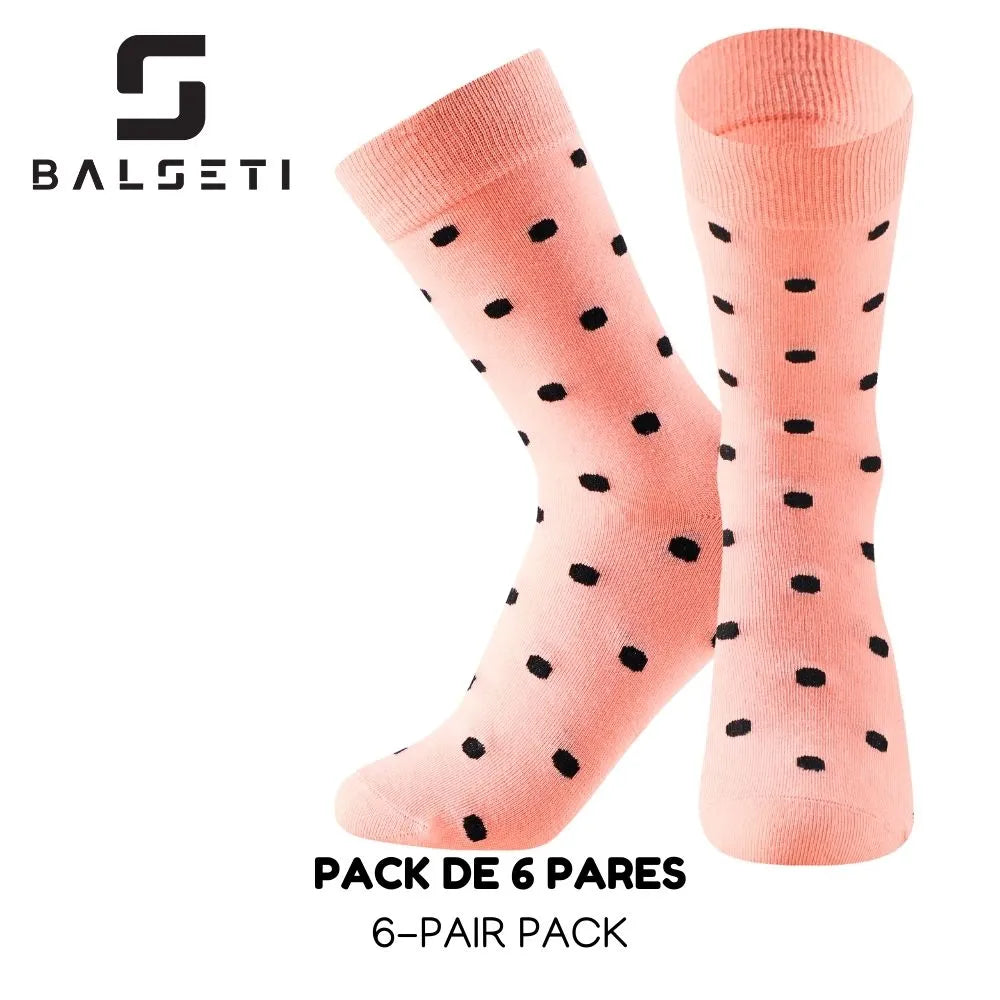 Pack de 6 pares en color a elegir con estampado de lunares y rayas. Modelo perfecto para mujeres y niñas.