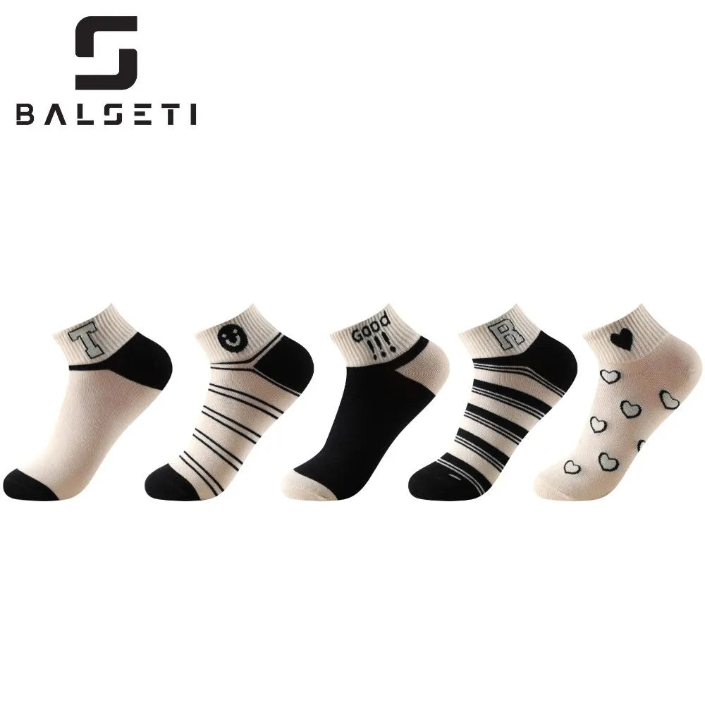 🎨Diseños divertidos: pack de 6 pares con estampado de letras y rayas en color blanco y negro.