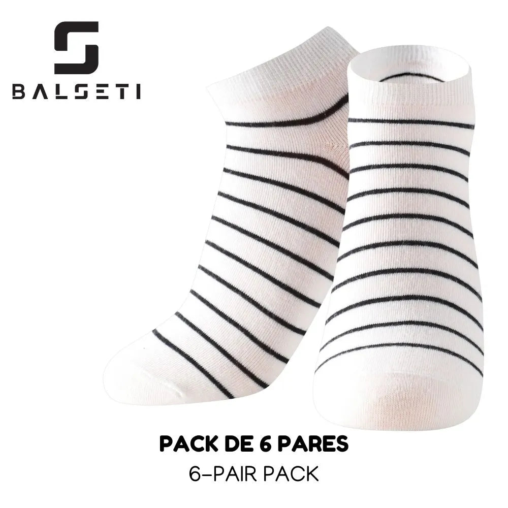 🎨Diseños divertidos: pack de 6 pares surtido con estampados de rayas sobre color azul claro, gris, rosa, blanco y negro.