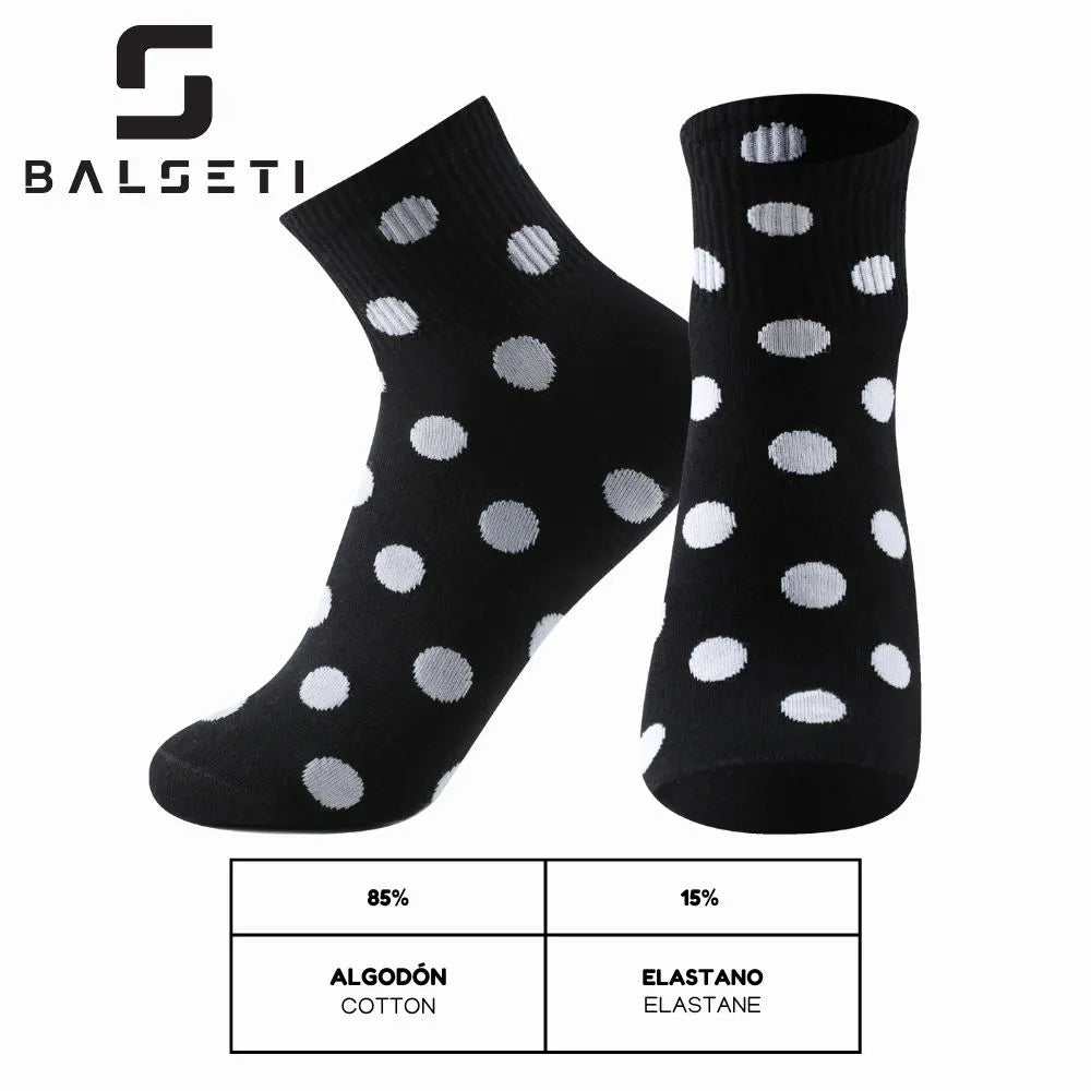 🎨Diseños divertidos: pack de 6 pares con estampado de rayas y lunares en color negro.